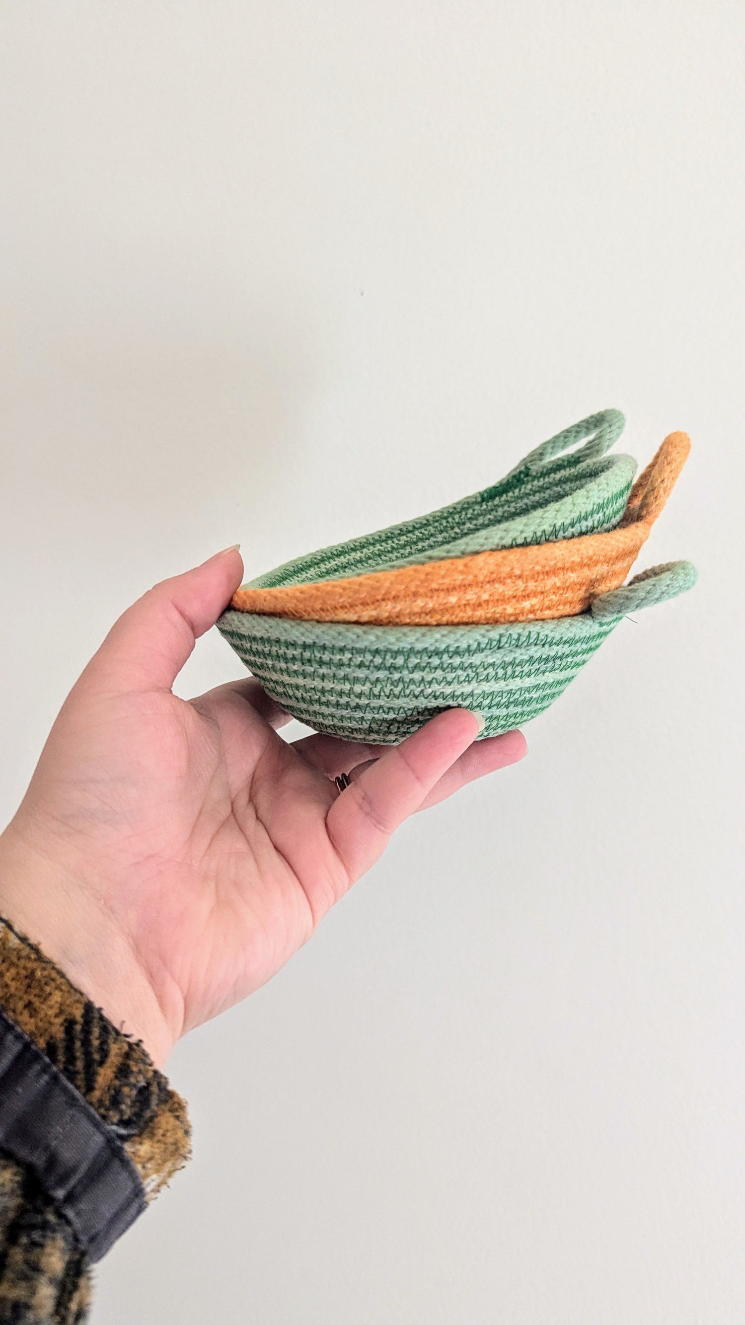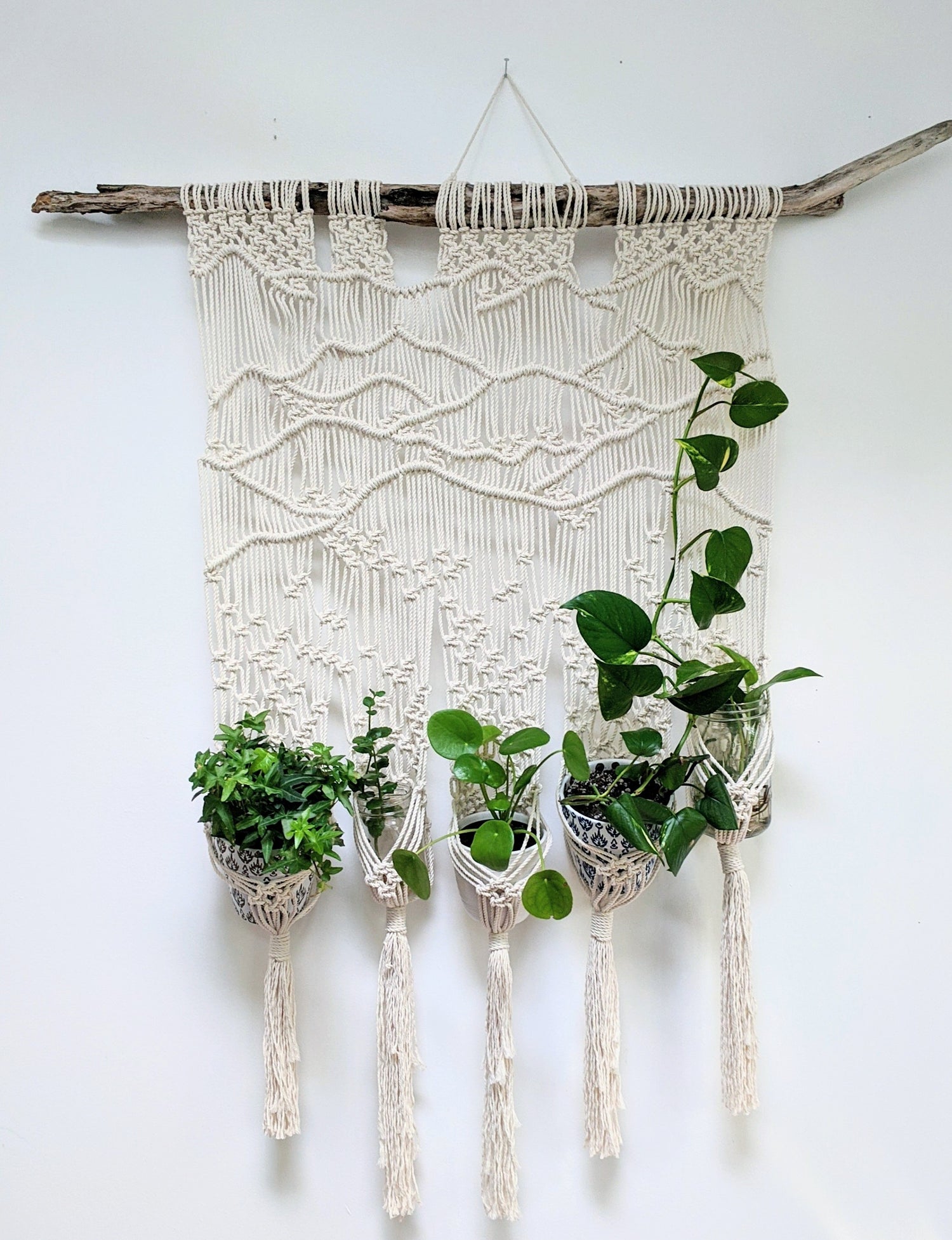 A small business one woman show, Woven Waves was born through a love of weaving and the natural world. Trina uses traditional basket weaving, tapestry, and macramé techniques to bring her visions to life with the intent of each piece having a use in someone's home. In her studio you can find her making anything from a small basket for jewelry to a plant hanger for a well loved succulent.